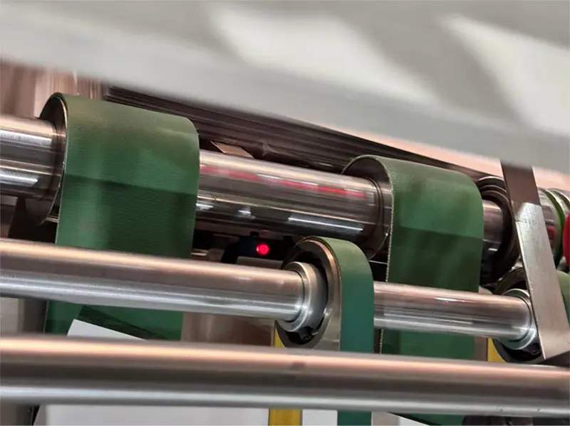 انڈکشن الیکٹرک آئی، کاغذ کی لمبائی کو محسوس کرتے ہوئے، اگر کاغذ کی لمبائی میں تبدیلی آتی ہے، تو بیلٹ تیز ہو جائے گا، اور ٹیک اپ مشین کا چکر الٹ جائے گا اور کاغذ کو باہر نکال دے گا۔